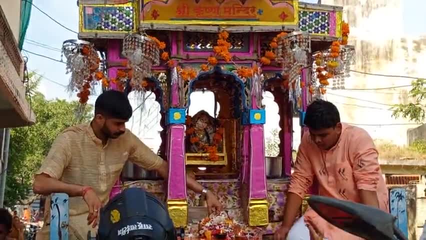 खातेगांव: खातेगांव, आज मंगलवार भगवान कृष्ण ढोल में विराज कर नगर भ्रमण पर निकले माता बहनों ने की पूजा अर्चना