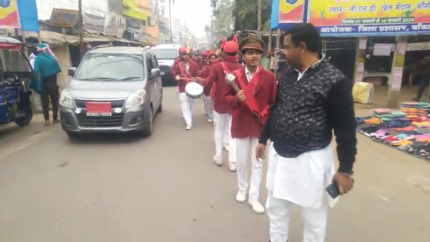 बौंसी ;- अयोध्या से आई पूजित अक्षत कलश और आमंत्रण पत्रक लिए आमंत्रित किए जाने के लिए भव्य भगवा शौभायात्रा जय श्री राम