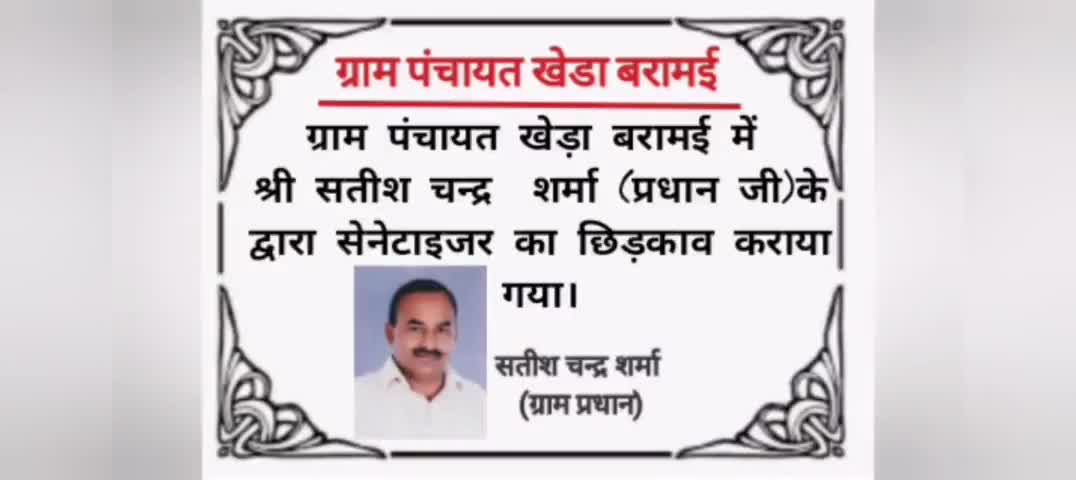 हाथरस: आज ग्राम पंचायत खेड़ा बरामई के गाँव नगला नन्दराम में ग्राम प्रधान श्री सतीश चन्द्र शर्मा द्वारा सेनिटाइज़ कराया गया । 🙏