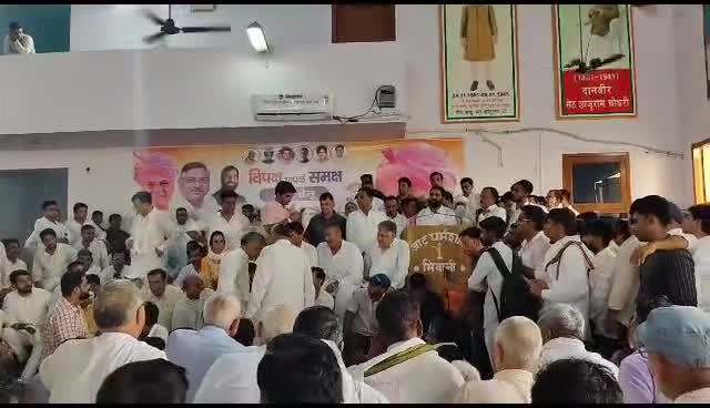 कांग्रेस नेता भाई राजबीर फरटिया भिवानी में विपक्ष आपके समक्ष कार्यक्रम की तैयारियों के लिए सांसद भाई दीपेन्द्र सिंह हुड्डा द्वारा ली गई कार्यकर्ता मीटिंग में अपने विचार रखते हुए।