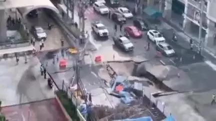 अचानक फटी धरती जमीन में समा गई गाड़ियां