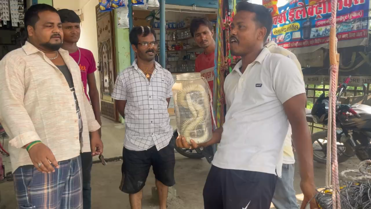 आज हृदयनगर पंचायत में रूपक गुप्ता जी के बाथरूम में जहरिली साबुन की सुचना मिलती ही हमलोग वाहा पहुचे और सांप सलामत पकरा गया #Dhiraj Ranjan Pradesh Sachiv