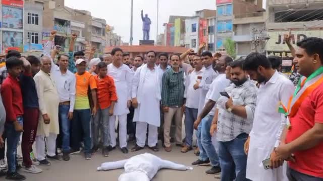 गंगानगर: जालौर में हुई दलित बच्चे की हत्या के मामले में दलित एक्शन कमेटी ने गोल बाजार में मुख्यमंत्री का पुतला फूंका