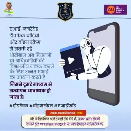⚠️ सावधान रहें! धोखेबाज अब एआई-जनरेटेड डीपफेक वीडियो और वॉइस स्कैम का सहारा ले रहे हैं।
