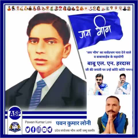 'जय भीम' का सर्वप्रथम नारा देने वाले व बाबासाहेब के सहयोगी बाबू एल. एन. हरदास जी की जयंती पर उन्हें कोटि कोटि नमन। जय भीम।