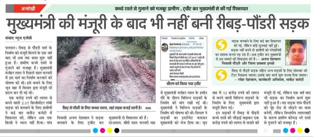 हथीन:जल्द शुरु होगा पौंडरी-रीबड सड़क का काम