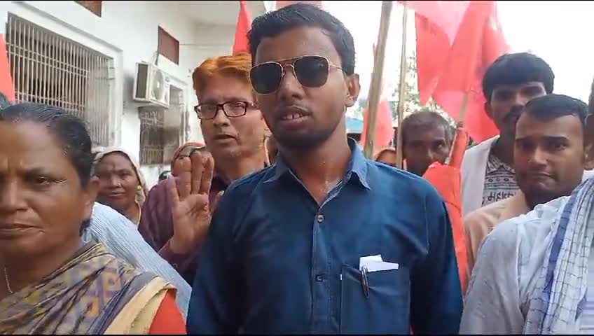 दरभंगा नगर निगम पर शहरी गरीबों के प्रदर्शन को संबोधित करते आइसा जिला अध्यक्ष प्रिंस कर्ण।