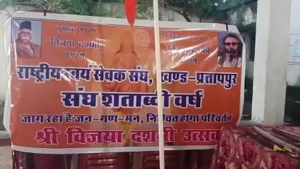 प्रतापपुर मिडिल स्कूल के प्रांगण में दुर्गा पूजा उत्सव के अवसर पर राष्ट्रीय स्वयंसेवक संघ ने शस्त्र पूजन का आयोजन किया। यह आयोजन मंगलवार को लगभग 5 बजे हुआ, जिसमें लोगों ने शस्त्रों की पूजा-अर्चना की। नित्यनाद उपाध्याय ने बताया कि इस वर्ष राष्ट्रीय स्वयंसेवक संघ संगठन अपने 100 साल पूरे कर रहा है। इसे लेकर संगठन अधिक से अधिक लोगों को अपने साथ जोड़ने के प्रयास