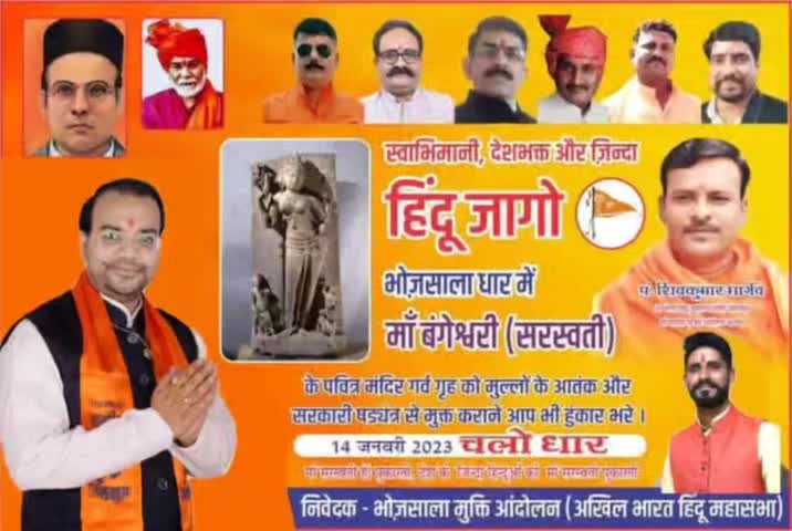 14 जनवरी 2023 भोजशाला पर हिन्दू महासभा उतरेगी आर पार की लड़ाई में
