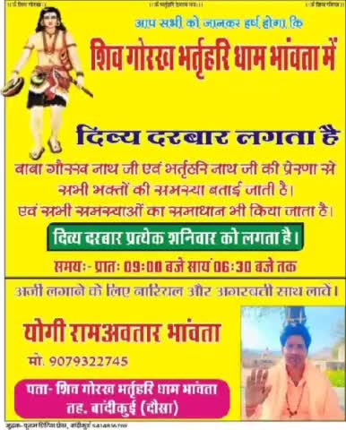 गोरखनाथ धाम भांवता बांदीकुई राजस्थान दिव्य दरबार प्रत्येक शनिवार रात्रि 9079322745