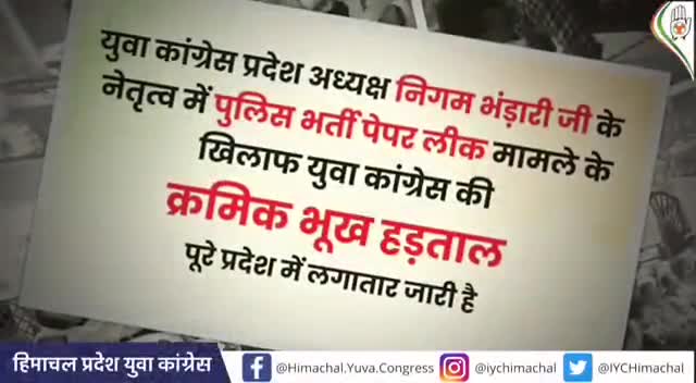 युवा कांग्रेस प्रदेश अध्यक्ष @nigambhandari जी के नेतृत्व में पुलिस भर्ती पेपर लीक मामले के खिलाफ युवा कांग्रेस की क्रमिक भूख हड़ताल पूरे प्रदेश में आज भी नौवें दिन लगातार जारी है।