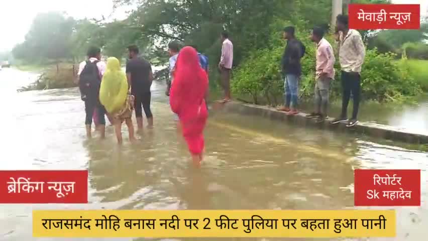 पानी की जोरदार आवक से नंद समंद बांध के पांच गेट खोले गए और मोही बनास नदी के पुल पर बहता पानी #india #Rajsamand @newsable