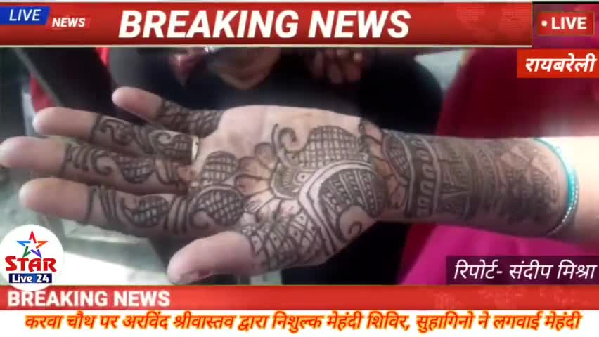 #रायबरेली करवा चौथ पर अरविंद श्रीवास्तव द्वारा लगवाया गया निशुल्क मेहंदी शिविर, सुहागिनो ने लगवाई मेहंदी।