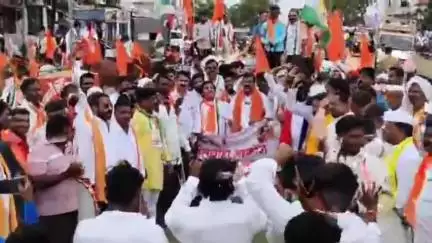 वडवणी तालुक्यात आज बुधवार, दि. 1 ऑक्टोबर रोजी सकाळी 11 वाजता महाविकास आघाडीकडून मोर्चा काढण्यात आला.या मोर्चामध्ये शेतकऱ्यांना झालेल्या नुकसानीची भरपाई तात्काळ द्यावी, असे मागण्यात आले. शेतकऱ्यांच्या नुकसानीचे पंचनामे करून हेक्टरी 50 हजार रुपये नुकसानभरपाई द्यावी शेतकऱ्यांचे पीककर्ज माफ करण्यात यावे विद्यार्थ्यांचे शैक्षणिक शुल्क माफ करण्यात यावे या सर्व मागण्या महाविकास आघाडीकडून तहसीलदारांना लेखी निवेदनाद्वारे देण्यात आल्या.मोर्चादरम्यान आघाडीने सरकारविरोधात जोरदार घोषणाबाजी केली.