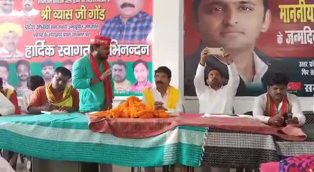 पूर्व राज्यमंत्री व समाजवादी अनुसूचित जनजाति प्रकोष्ठ के प्रदेश अध्यक्ष श्री व्यास जी गोंड जी का स्वगत भाषण करतें हुए