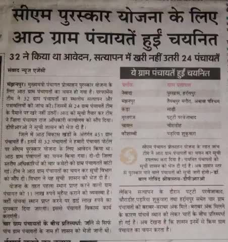 चायल: राम प्रकाश ग्राम प्रधान हर्रायपुर नेवादा कौशांबी की ग्राम पंचायत का नाम भी सीएम पुरस्कार प्रतिस्पर्धा में शामिल