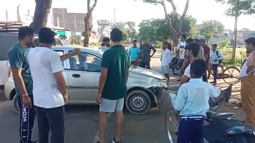 जतारा: kunbahari ke samne berwas Shobha Yadav ki gadi ka hua accident Neem ke ped se takraai gadi Jatara mein Adalat ke samne.