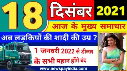 आज 18 दिसंबर के मुख्य हिंदी समाचार | अब लड़कियों की शादी 18 साल में नहीं होगी - नई उम्र 21 वर्ष कर दी गई ! #hindinews