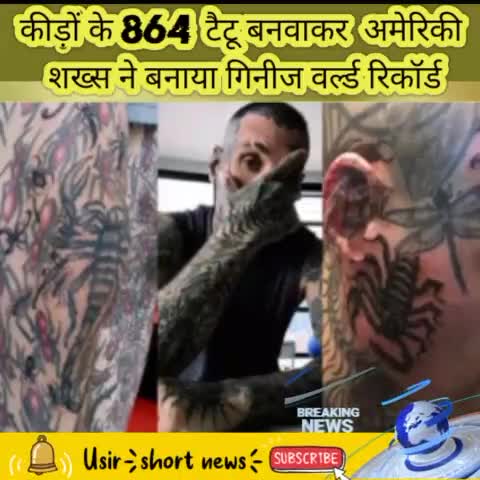कीड़ों के 864 टैटू बनवाकर अमेरिकी शख्स ने बनाया गिनीज वर्ल्ड रिकॉर्ड