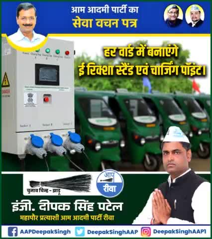 हर वार्ड में बनाएंगे ई रिक्शा स्टैंड एवं चार्जिंग प्वाइंट #AAP का "सेवा वचन पत्र"। #13_जुलाई #VoteForJhadu