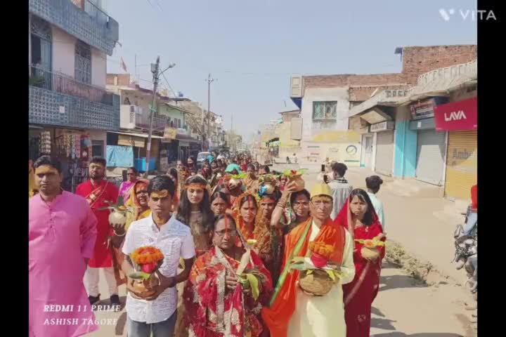 लातेहार: शिव पार्वती सह पंचमुखी हनुमान मंदिर लातेहार के 7वें वार्षिकउत्सव को लेकर निकाली गयी शहर में भव्य कलश यात्रा