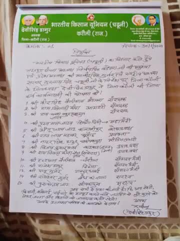भारतीय किसान यूनियन चढूनी की करौली जिला कार्यकारिणी हुई गठित देवी सिंह डागुर जिला अध्यक्ष करौली