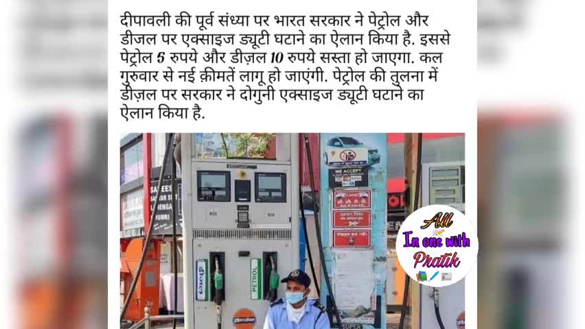 केंद्र सरकार ने किया बड़ा ऐलान । पेट्रोल और डीजल के दाम घटे #petrol