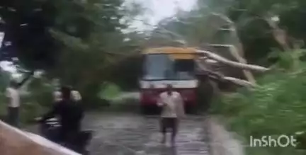 सोमवार की सांय 5 बजे बारिश के दौरान तेज हवाओं के चलने पर नहटौर धामपुर मार्ग पर गांव हर्रा के पास एक चलती हुई रोडवेज बस पर यूकेलिप्टस का पेड़ टूटकर गिर गया।सवारियो में हड़कंप मच गया।एक बड़ा हादसा होने से टल गया।मार्ग पर आवागमन भी बाधित हो गया।हवा चलने से यूकेलिप्टस के पेड़ टूटकर सड़क पर गिर गए और दर्जनों विद्युत खंबे भी टूटने से विद्युत आपूर्ति ठप हो गई।