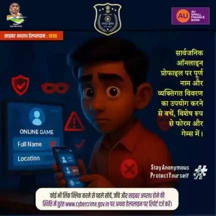 सार्वजनिक ऑनलाइन प्रोफाइल पर अपना पूरा नाम या व्यक्तिगत विवरण साझा करने से बचें, विशेष रूप से फोरम और गेमिंग प्लेटफ़ॉर्म पर। अपनी पहचान को ऑनलाइन सुरक्षित रखें। साइबर जागरूक बनकर रहें साइबर ख़तरों से सुरक्षित। #JaipurPolice #CyberSafety