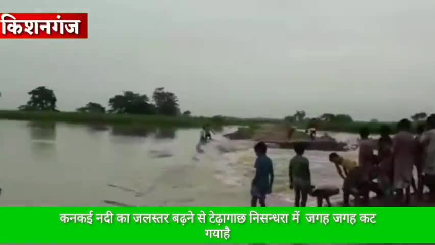बहादुरगंज: कनकई नदी का जलस्तर बढ़ने से टेढ़ागाछ निसन्धरा के कई सड़क कट गया है, इलाके में पानी घुस गया है।