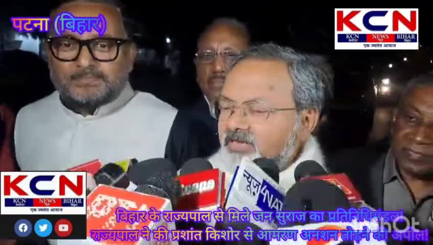 बिहार के राज्यपाल से मिले जन सुराज का प्रतिनिधिमंडल! राज्यपाल ने की प्रशांत किशोर से आमरण अनशन तोड़ने की अपील!
