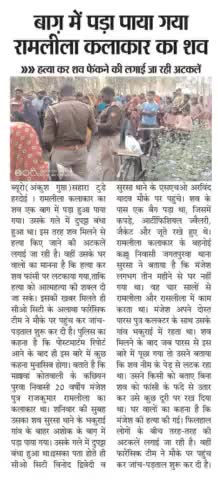हरदोई : बाग में पड़ा पाया गया रामलीला कलाकार का शव #newspaper