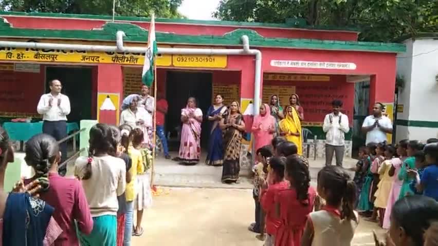Dhakwara ke prathmik vidyalay mein Pradhan Ji ke dwara jhanda fahraya Gaya Jay Hind