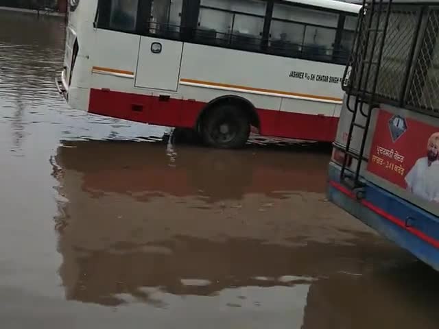 नरवाना बस स्टैंड में हल्की बारिश के कारण हुआ जलभराव यात्रीगण परेशान
