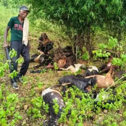 बारिश के साथ आकाशीय बिजली गिरने से एक माध्यम बरगी आदिवासी परिवार की 21 बकरियों की आकाशीय बिजली गिरने से दर्दनाक मौत हो गई है