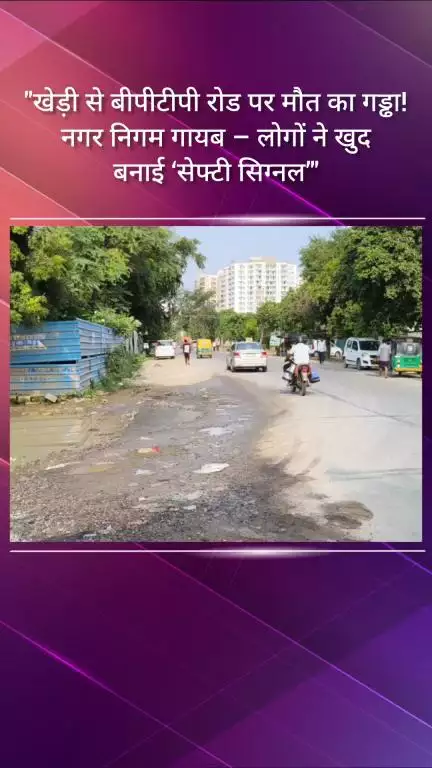 "खेड़ी से बीपीटीपी रोड पर मौत का गड्ढा! नगर निगम गायब – लोगों ने खुद बनाई ‘सेफ्टी सिग्नल’".......................