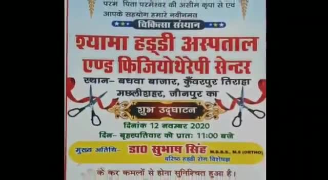 मछलीशहर: बंधवा बाजार के पास नए श्यामा हड्डी अस्पताल डॉक्टर सुभाष सिंह जी द्वारा उदघाटन किया गया #बंधवा बाजार #hospital