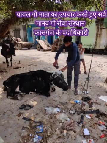 जनपद कासगंज में घायल गौ माता का उपचार करते हुए सर्व मानव गौ सेवा संस्थान के सदस्य