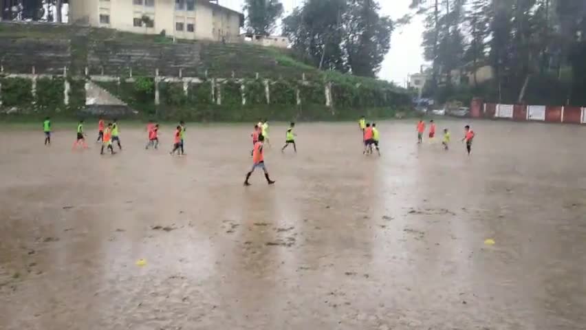 1पौड़ी यूनाइटेड के प्लेयर बारिश में एन्जॉय करते हुये।