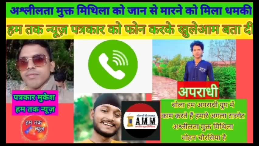 अश्लीलता मुक्त मिथिला को जान से मारने का धमकी मिला हम तक न्यूज़ पर मोहन चौरसिया को बोला सिद्धूमूसेवाला की तरह मारेंगे