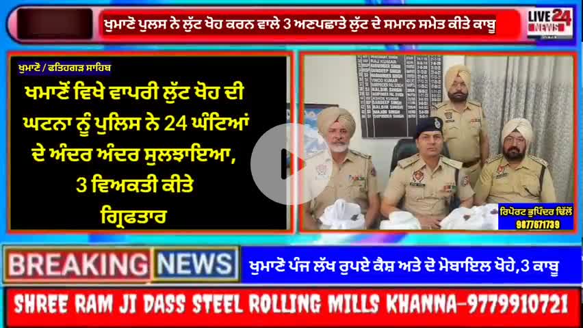 ਖਮਾਣੋਂ: ਖਮਾਣੋਂ ਵਿਖੇ ਵਾਪਰੀ ਲੁੱਟ ਖੋਹ ਦੀ ਘਟਨਾ ਨੂੰ ਪੁਲਿਸ ਨੇ 24 ਘੰਟਿਆਂ ਦੇ ਅੰਦਰ ਅੰਦਰ ਸੁਲਝਾਇਆ, 3 ਵਿਅਕਤੀ ਕੀਤੇ ਗ੍ਰਿਫਤਾਰ-SP YADAV G