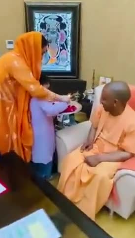 #मुलायम सिंह की छोटी बहू #अपर्णा सिंह बिष्ट की बेटी ने #विजय तिलक लगाकर #सीएम #योगी को दी बधाई ।