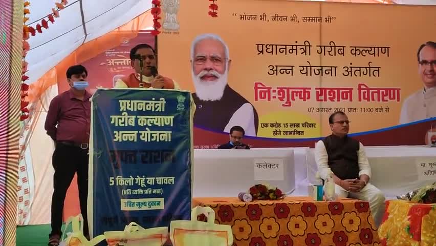 प्रधानमंत्री गरीब कल्याण अन्न योजना के अंतर्गत अन्नोत्सव कार्यक्रम मे राशन वितरण कर हितग्राहियों को संबोधित करते हुये