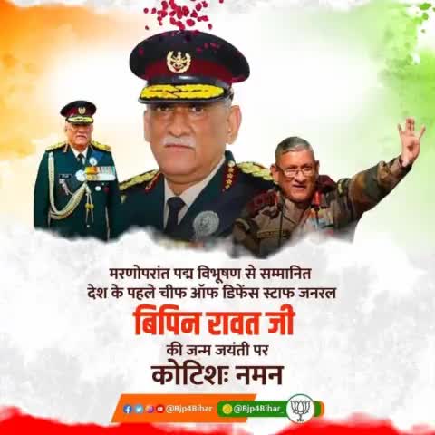 भारत के प्रथम सीडीएस और थल सेना के पूर्व अध्यक्ष जनरल विपिन रावत जी की जयंती पर उन्हें कोटिश: नमन।