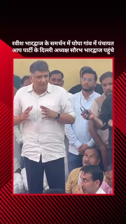 नरेला: रवीश भारद्वाज के समर्थन में घोघा गांव में पंचायत, आप पार्टी के दिल्ली अध्यक्ष सौरभ भारद्वाज पहुंचे
