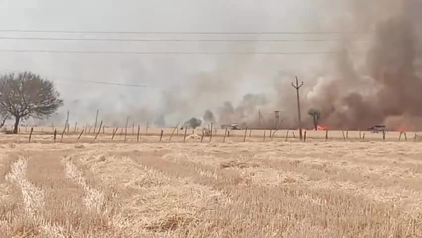 भेरुंदा तहसील के गांव डीमावर में गेहूं में लगी आग। 10 एकड़ की फसल बर्बाद