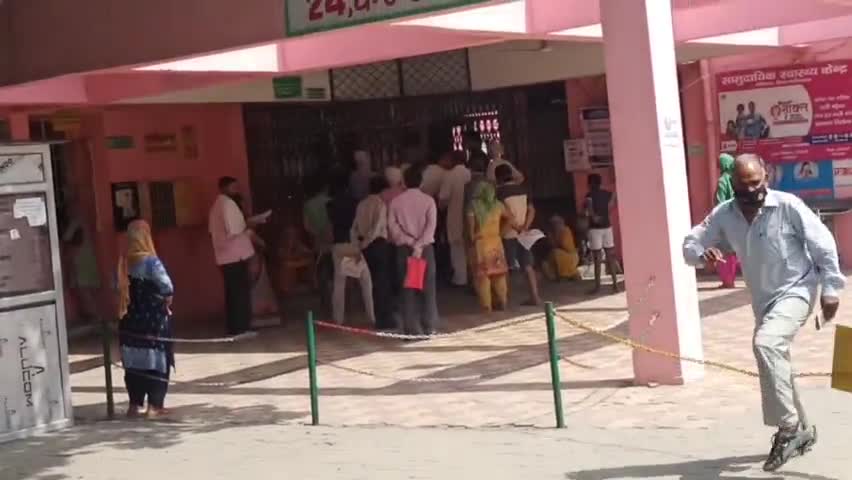 गाजियाबाद के मोदीनगर शहर के सरकारी हॉस्पिटल में कोरोना वैक्सीन लगवाने के लिए लगी लंबी लाइन । #viral