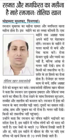रमज़ान में करे अल्लाह की खूब इबादत तौसीफ बीसरू