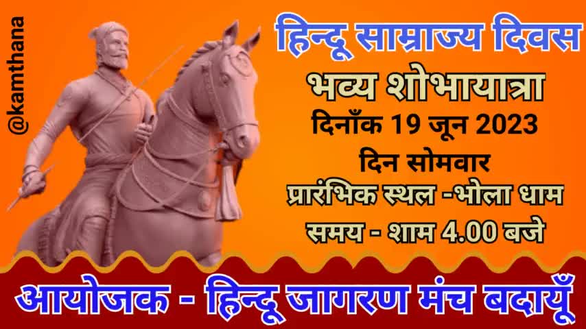 आज शाम 4.00 बजे आप सभी आमंत्रित हैं। #जागरूकता_ही_प्राथमिकता #देश_एवं_धर्म_की_रक्षा #हिन्दू_जागरण_मंच_युवा_वाहिनी_बदायूँ #नितिन_कमठाना #हिन्दू_साम्राज्य_दिवस
