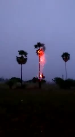 Aasman m bijli kadkne ki wajha se narial ke ped pr lagi aag #panchkulasamachar